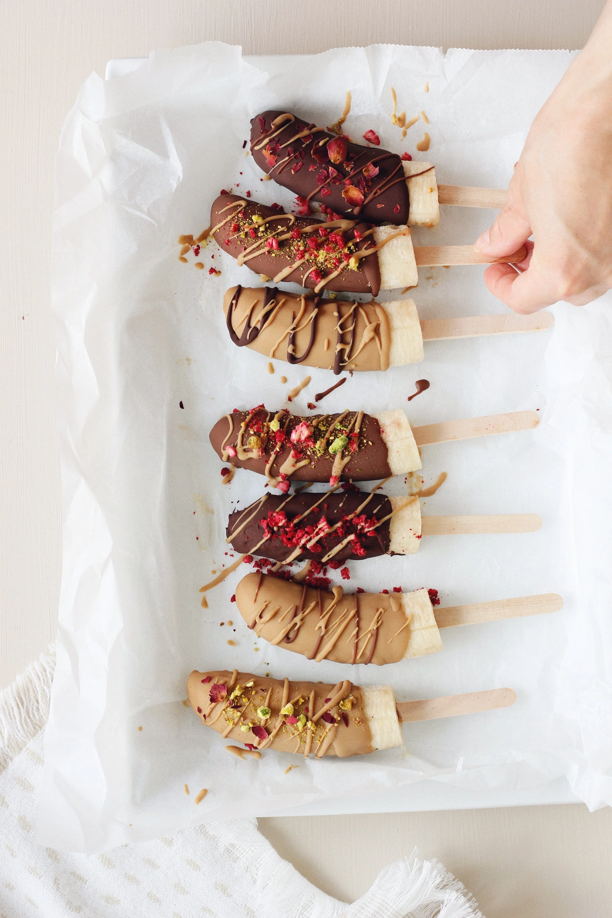 OK! Jeg er alltid på jakt etter sunne snacks ideer - for på sommeren ønsker man jo såklart kjølende is. Jeg vil også ha det sunt for da føler jeg meg best. Disse er da helt perfekte!Fryste modne bananer (ja de må være modne, for da er de søtest og mest dessert aktig) og får en kremete konsistens. Så de kan spises nesten med en gang du tar dem ut av frysen. Jeg dippet dem i plantebasert sjokolade, slik at hele denne herligheten er helt plantebasert, raffinert sukkerfri og glutenfri!Så hvordan lager vi disse?Jo, det blir ikke enklere :