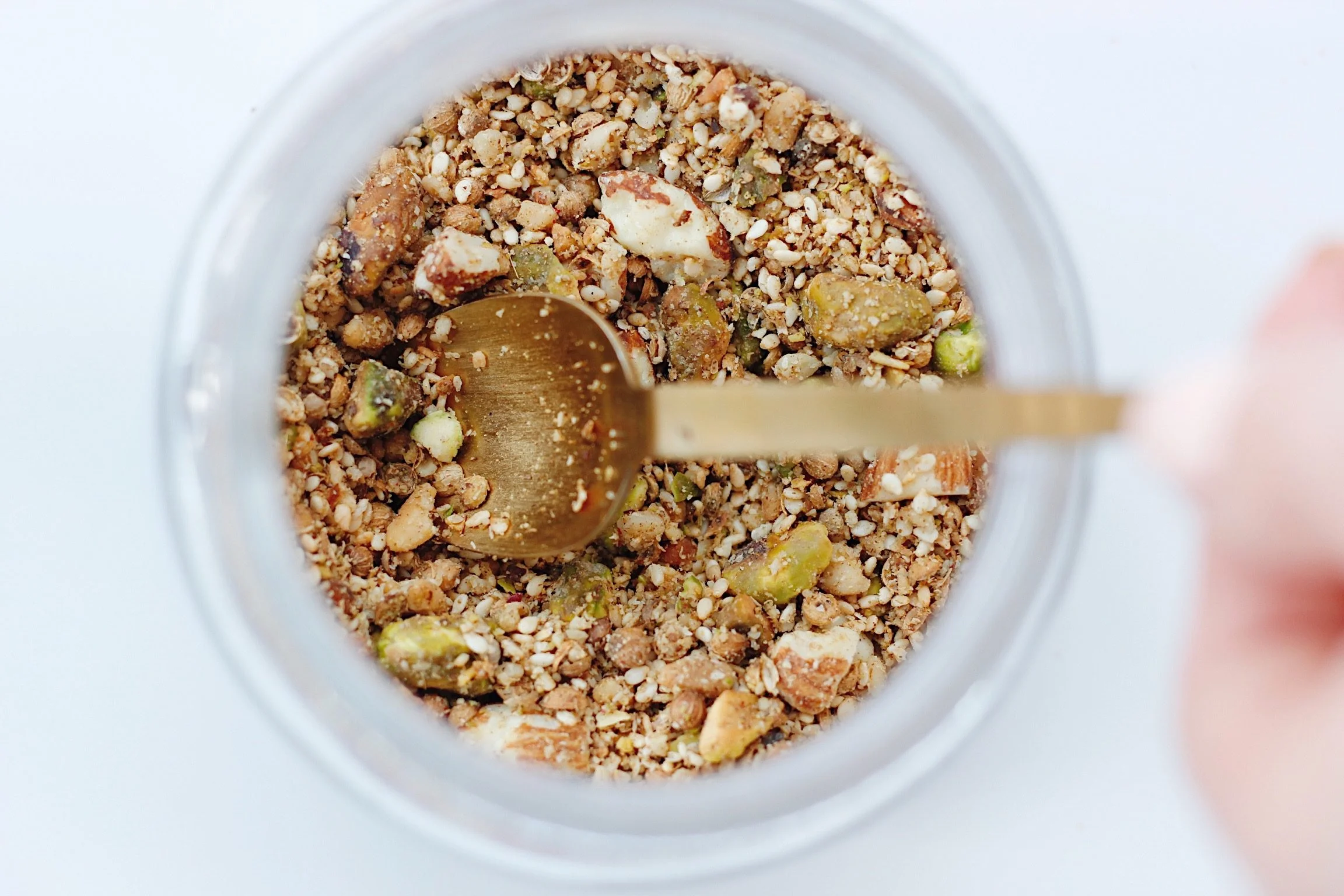 Dukkah kommer orginalt fra Egypt og er en blanding av nøtter, frø, urter og krydder.