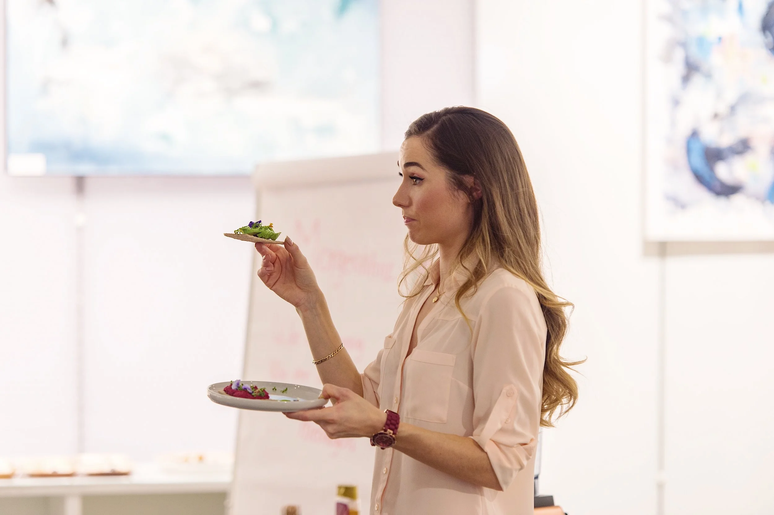 Historien i forkant av dette eventet var at etter flere år som makeup-artist, og bodd alle andre steder enn i min hjemby de siste syv årene, føler jeg jeg har fått opparbeidet meg både erfaring og et unikt innsyn i hvilke utfordringer som er gjengangere hos jenter og kvinner. Når jeg videre koblet dette til min yoga-utdannelse og bakgrunn innen ernæring, forsto jeg hvor sterk sammenhengen mellom vårt indre og ytre er. Dette ville jeg ta for meg med foredrag om vaner og mestring, ernæring samt hudpleie- og makeup kurs. Glød på innsiden og utsiden!