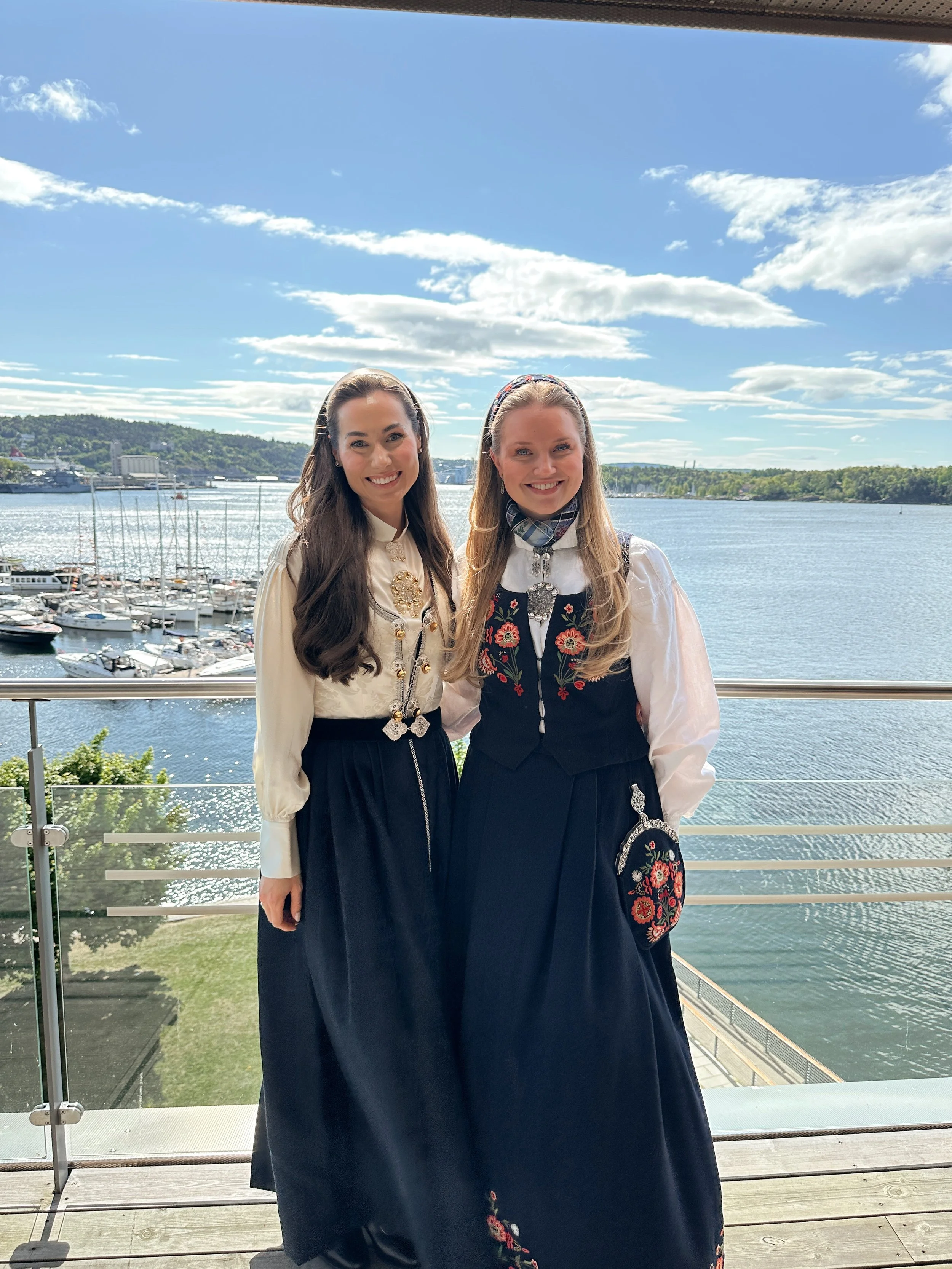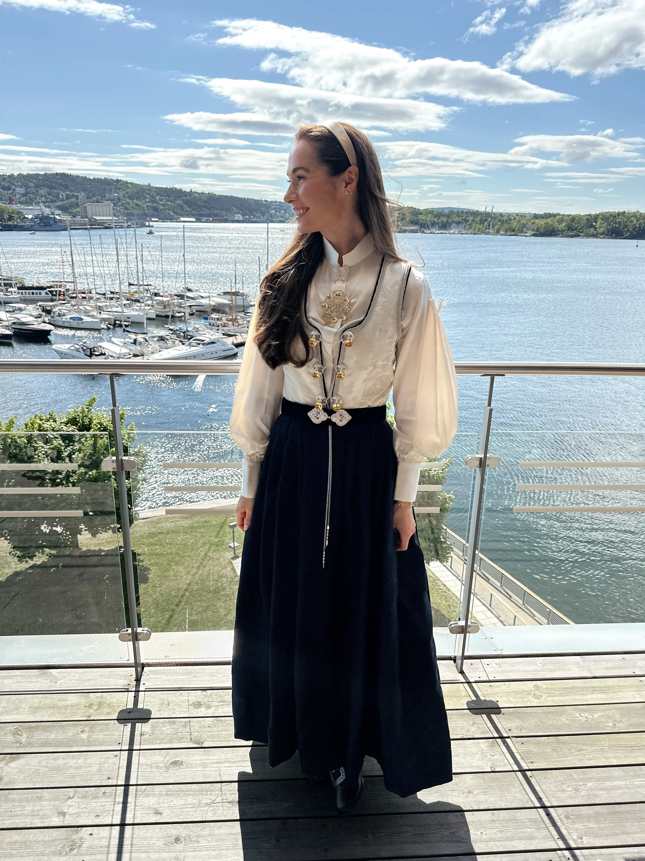 Vel hjemme gikk jeg i gang med planen jeg hadde lagt kvelden før: dusj, hårkrølling, sminke – og selvsagt: på med bunaden. Så bar det videre til jentefrokost på Tjuvholmen. Og åh, for en gjeng! Stemningen, maten, og hele opplegget var så hyggelig – jeg storkoste meg fra første stund.