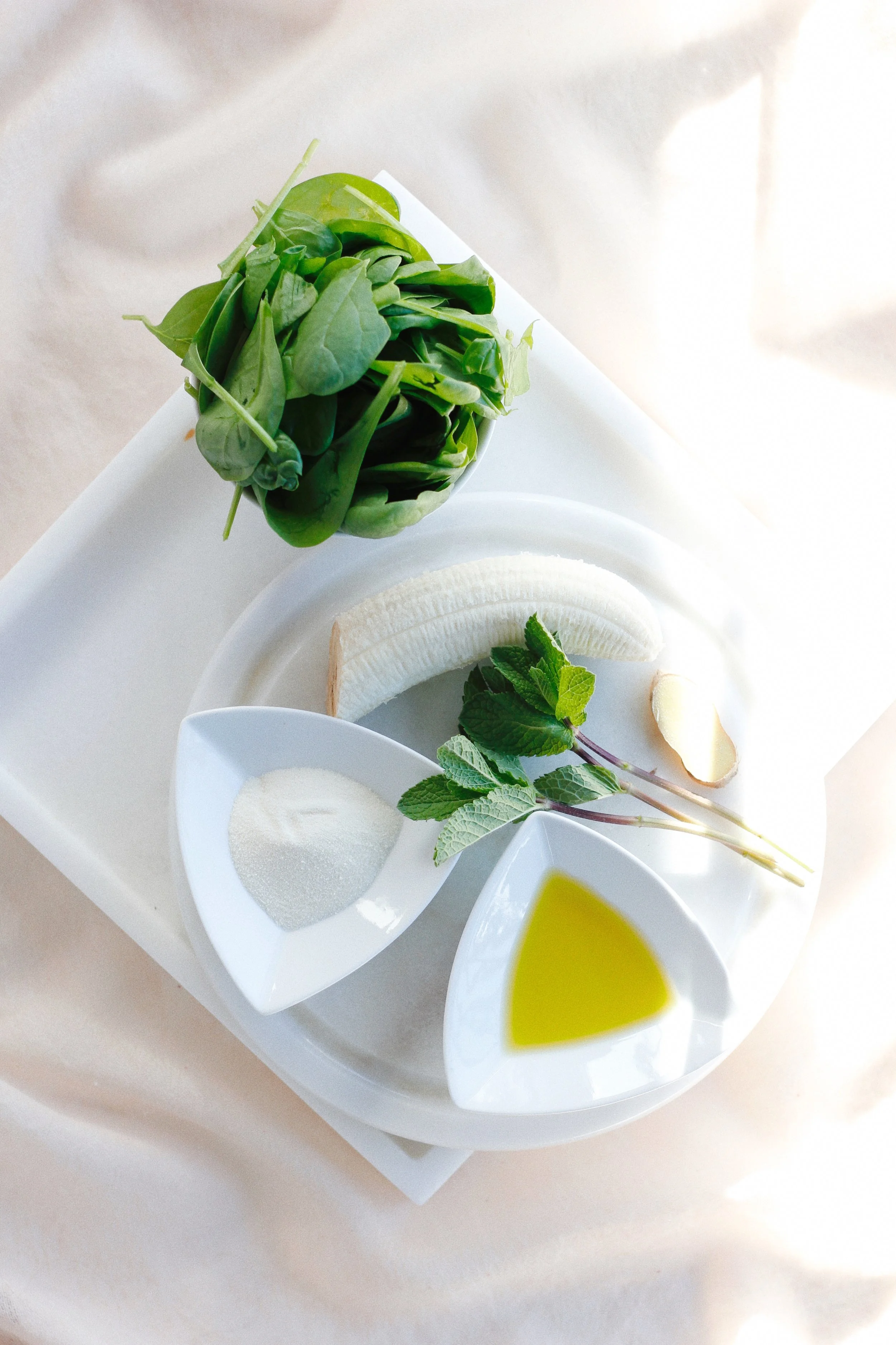 Ha gjerne i chiafrø eller linfrø for ekstra fiber og sunne fettsyrer. Den inneholder ingefær som styrker immunforsvaret og er bra for magen. Den har mye mint som er bra for fordøyelsen, I tillegg til spinat som inneholder jern, og olivenolje som plumper opp hudcellene dine.