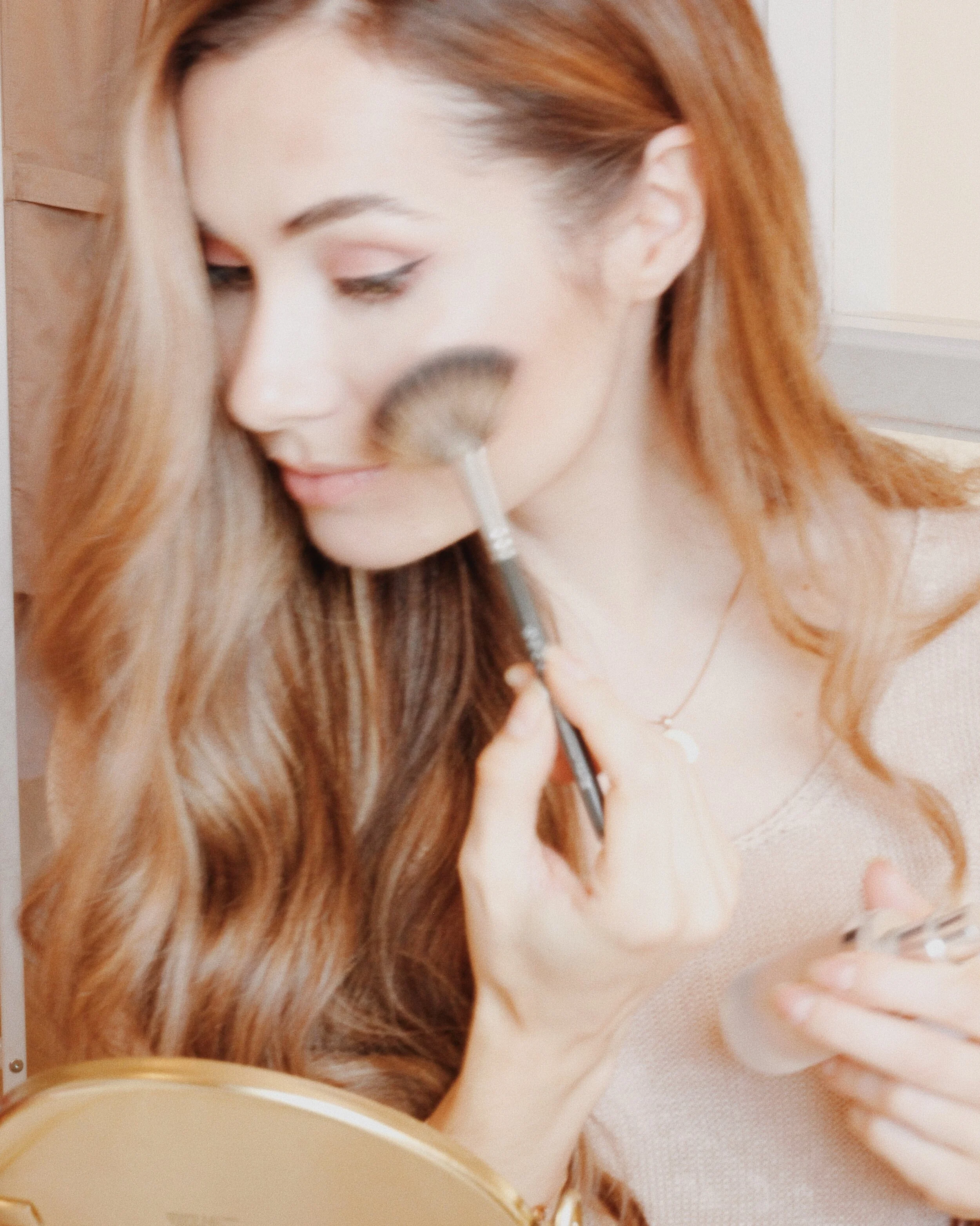 Jeg bruker både fast highlighter pudder, og flytende highligter, men påfører dem ulikt på huden. Jeg påfører dem også alltid helt tilslutt i makeupen.