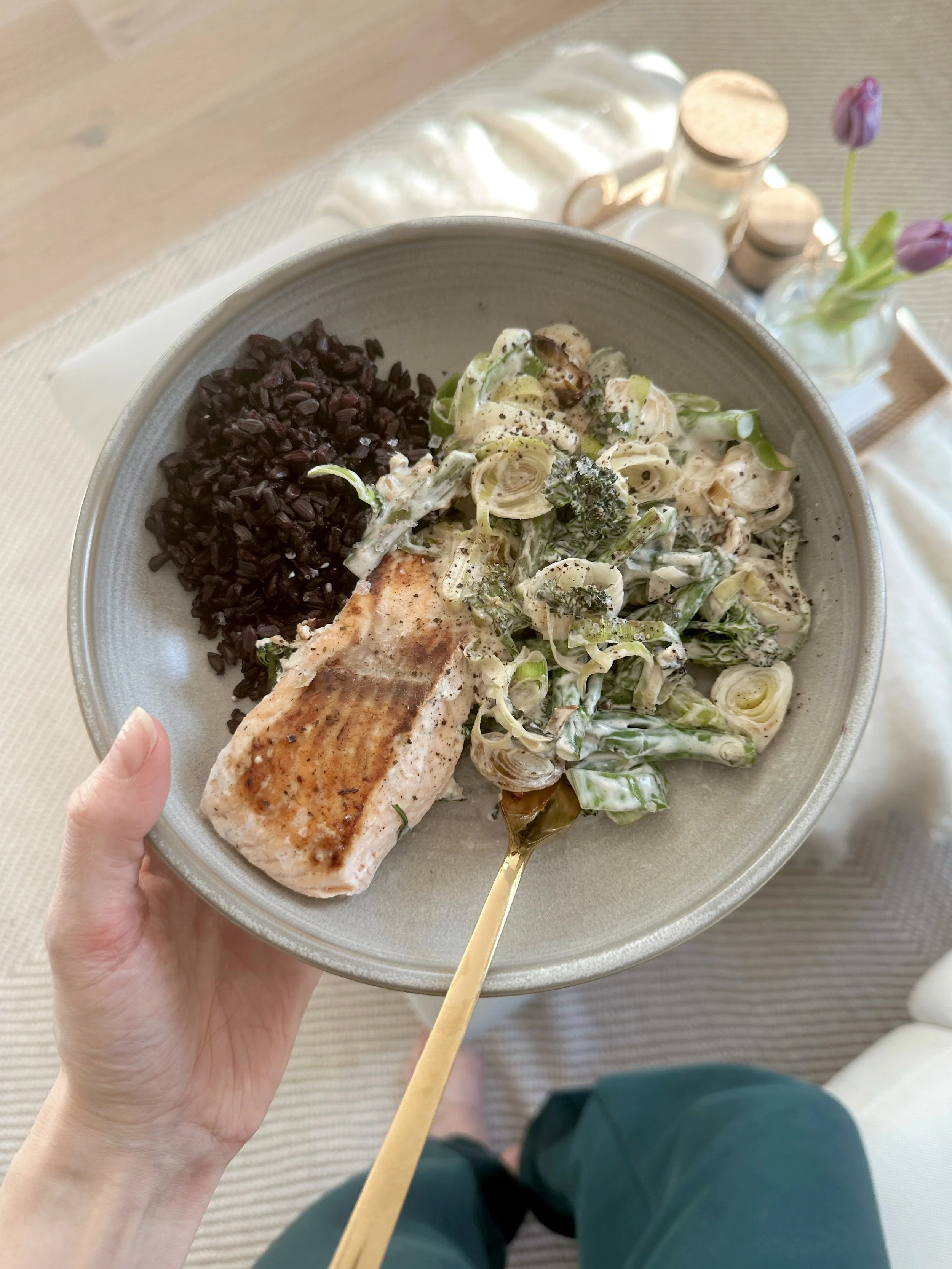 Dette er laksemiddagen som blir laget ukentlig her hjemme! Det er så enkelt, og går fort. Jeg hadde sort ris på siden men du kan droppe det eller ha noen annet på siden om du ønsker det:)