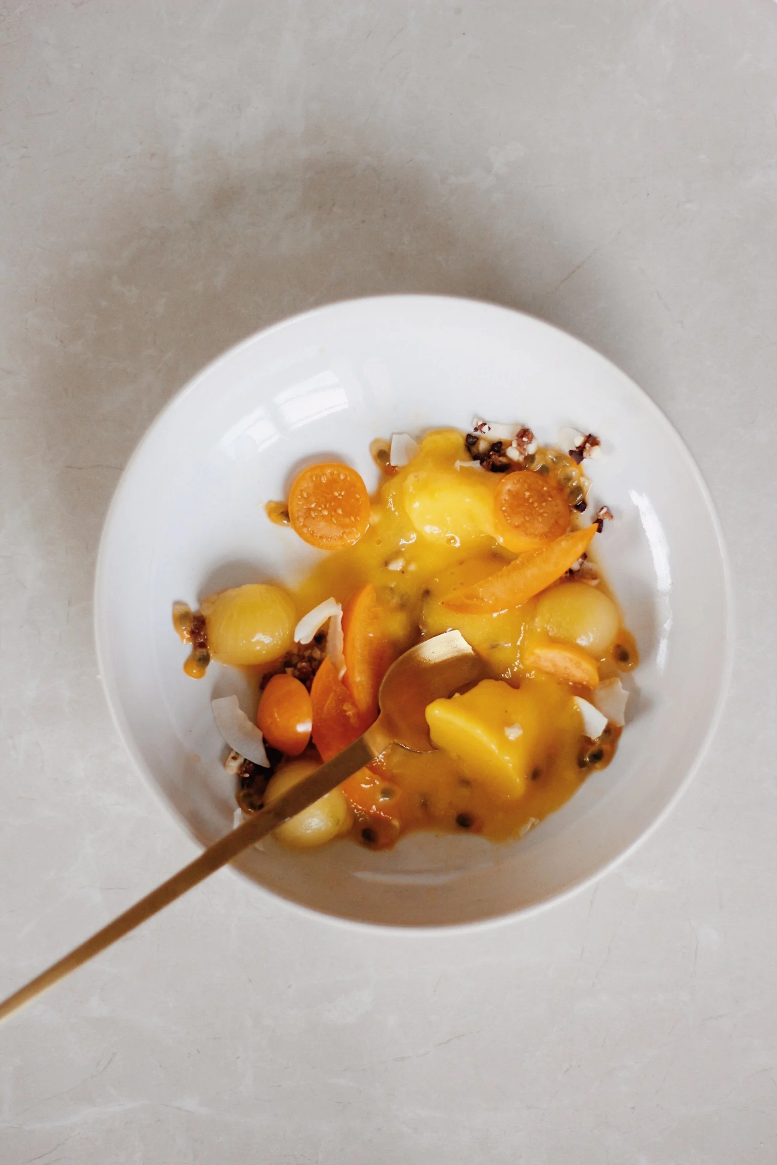 Jeg laget også litt chewy crumble på toppen her men det er såklart helt valgfritt. Du kan ha litt hakket frukt istedenfor eller bare ha den som den er.
