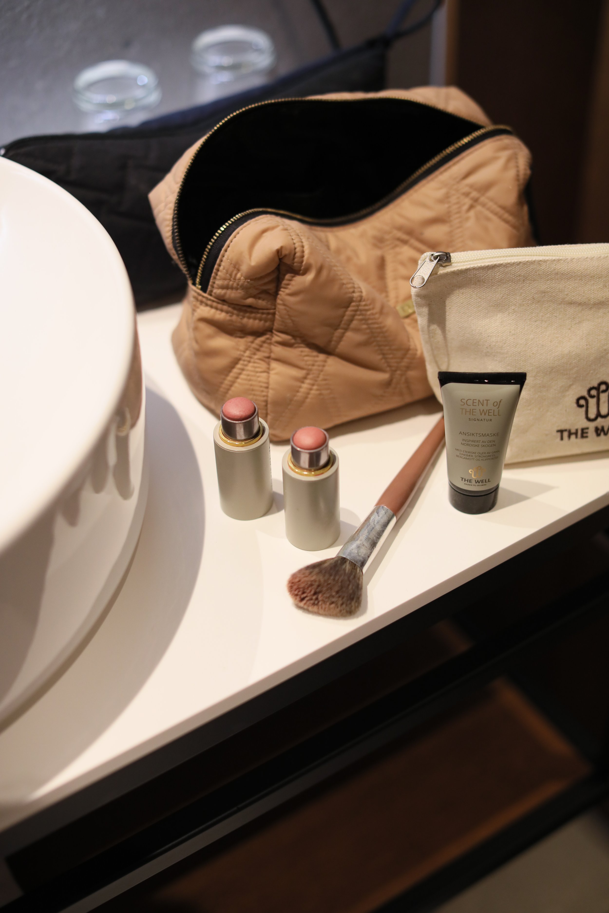 Jeg er hun som ´flytter´ litt inn når jeg bor på hotell. Jeg liker å sette frem alt av produkter i hyllene. Jeg virkelig elsker å bruke tid på morgen- og kveldshudpleierutinen min. Og nå hadde jeg med meg litt ekstra pleiende produkter for en skikkelig self-care sunday.